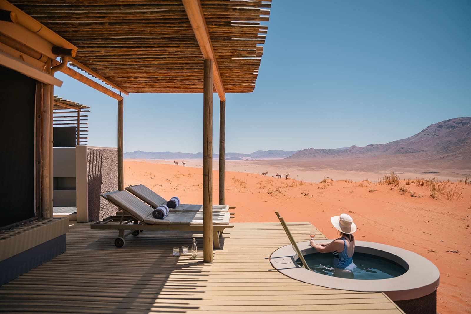 Exclusive desert escapes offering a blend of quiet solitude, dramatic dune and mountain landscapes, expert guiding, and a variety of activities from scenic drives and nature walks to horse-riding, hot-air ballooning and interpretive experiences tailored to the desert environment.